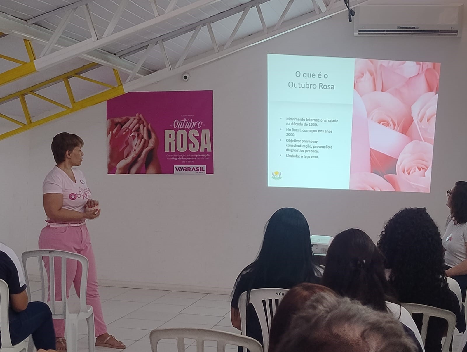 A ação foi conduzida pela enfermeira Janaína de Oliveira Silva, que apresentou dados atualizados sobre a incidência da doença e realizou uma demonstração prática do autoexame, destacando a necessidade do autocuidado contínuo. Embora o foco principal seja o público feminino, a palestra também abordou os casos de câncer de mama em homens, ressaltando que a atenção à saúde deve ser igual para todos.