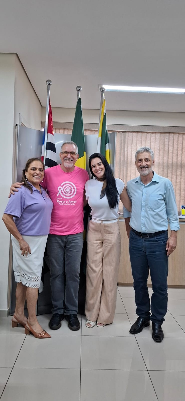A coordenadora e voluntária do Pedágio Solidário do Grupo Rosa e Amor, Mara Ceccherini, acompanhada do gestor Celso Sabbatini e Hellen Rodrigues, da equipe da entidade, esteve na segunda-feira (6) em visita ao presidente da Câmara Municipal, Israel Scupenaro, para convidar os vereadores a participarem como voluntários da ação, que acontece no próximo dia 18 de outubro.
