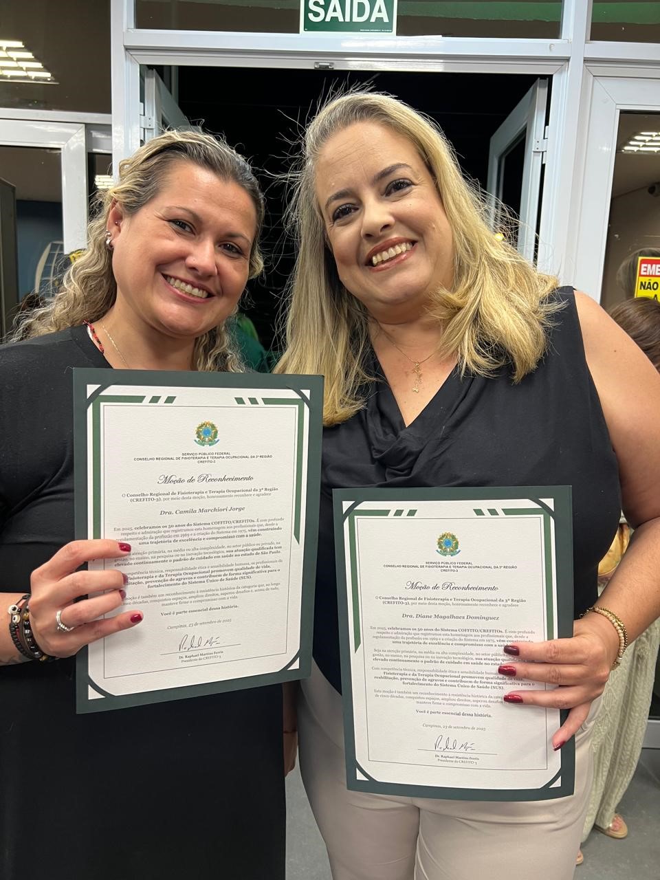 Receberam a homenagem as terapeutas ocupacionais Camila Marchiori Jorge e Diane Magalhães Dominguez, além do fisioterapeuta Felipe Corrêa de Freitas. O destaque foi para a competência técnica e a responsabilidade ética desses profissionais, que contribuem de forma significativa para a reabilitação, prevenção de agravos e melhoria da qualidade de vida dos assistidos pela instituição.