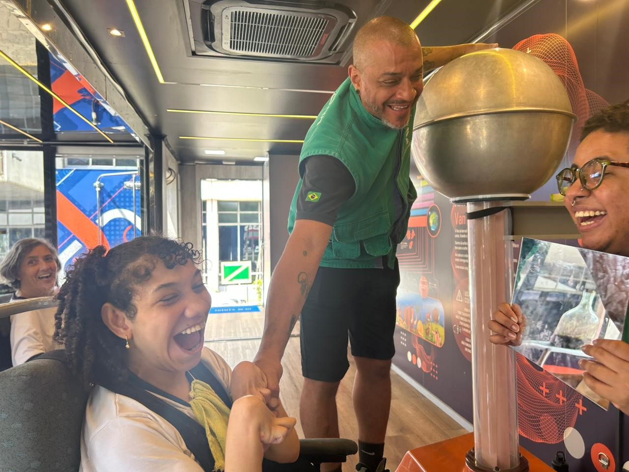 Durante a visita, os usuários da instituição puderam explorar cada espaço da carreta, interagindo com as atividades propostas, aprendendo de forma lúdica e vivenciando momentos de muita diversão e descobertas.