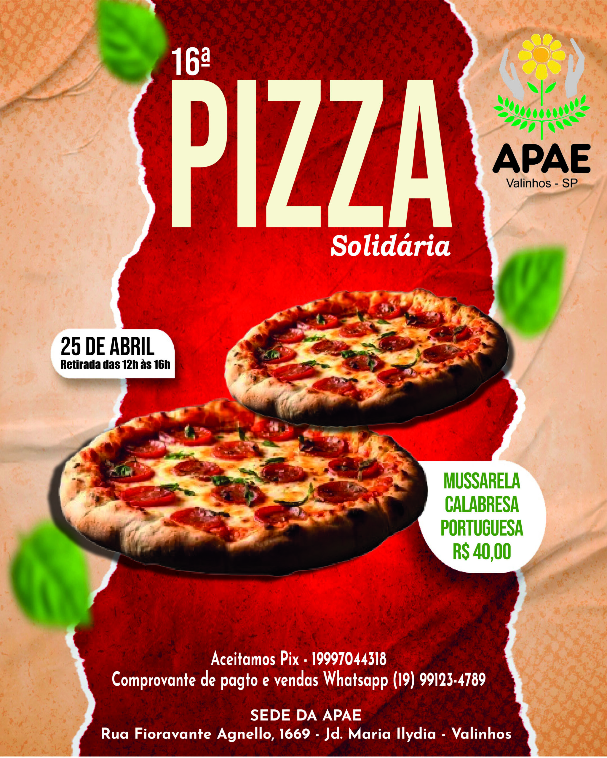A solidariedade já tem data e sabor marcados em Valinhos! Neste sábado, 25 de abril, a APAE Valinhos realiza a 16ª edição da tradicional Pizza Solidária, uma campanha que une gastronomia e propósito em prol da instituição.